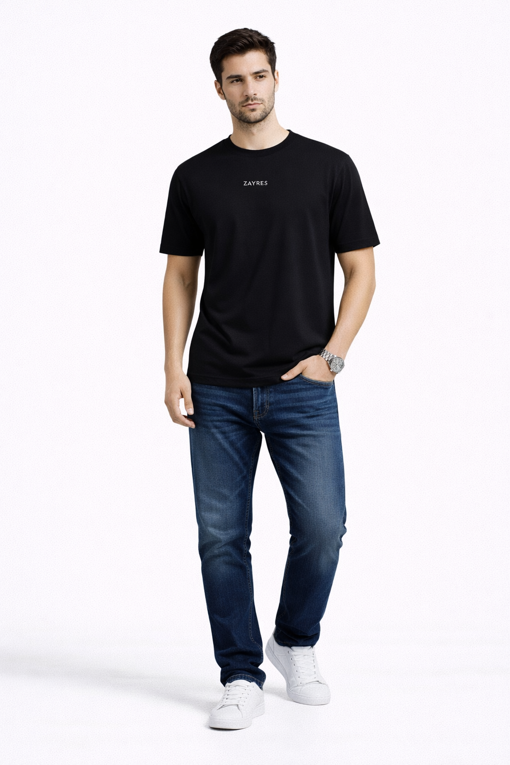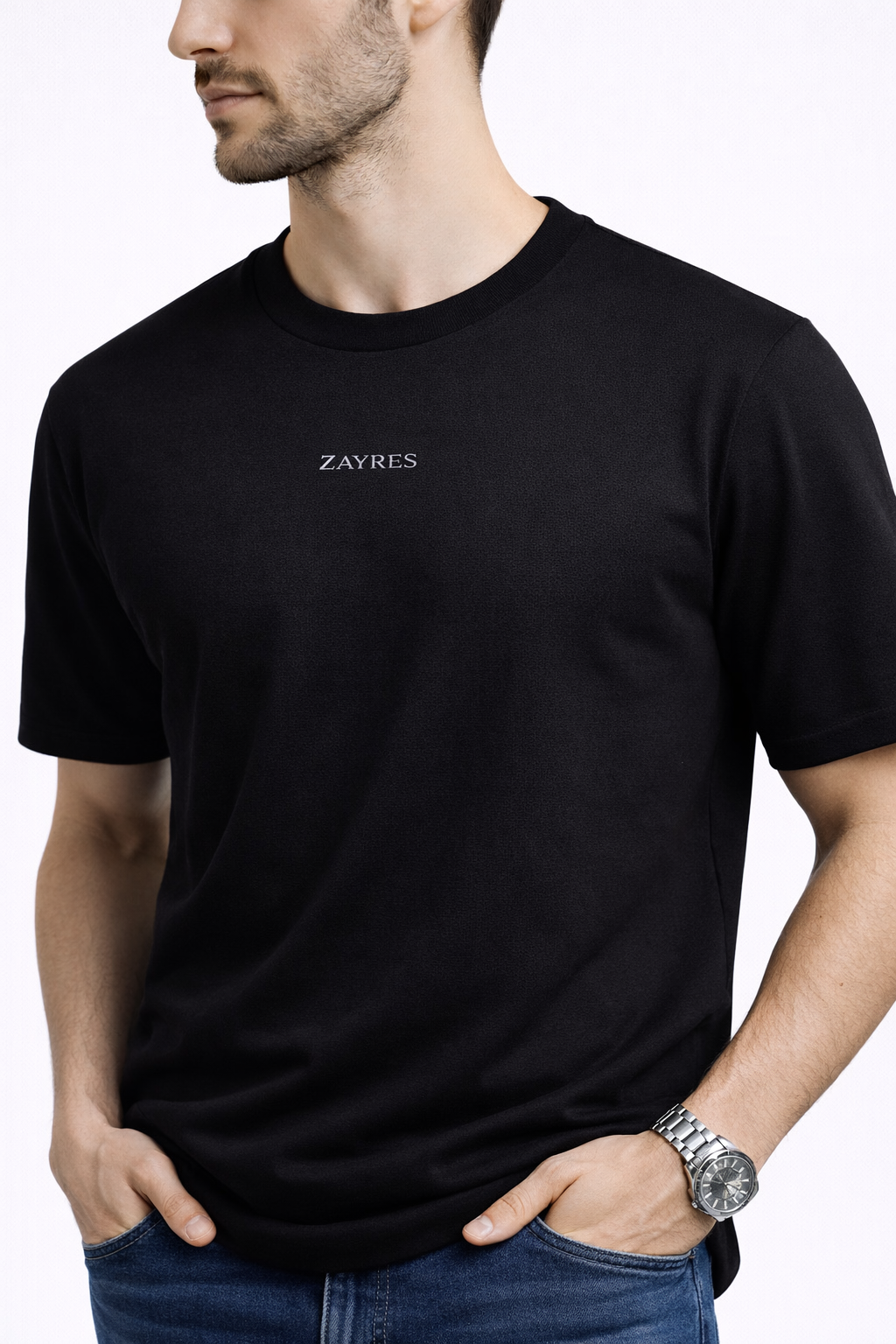 There is black, and then there is Zayres Pitch Black. Engineered from 100% Certified Supima Cotton, this regular fit tee delivers an incredibly rich, deep color that doesn’t fade. The minimalist off-white “ZAYRES” branding adds a touch of quiet luxury to the chest of this regular fit t-shirt.